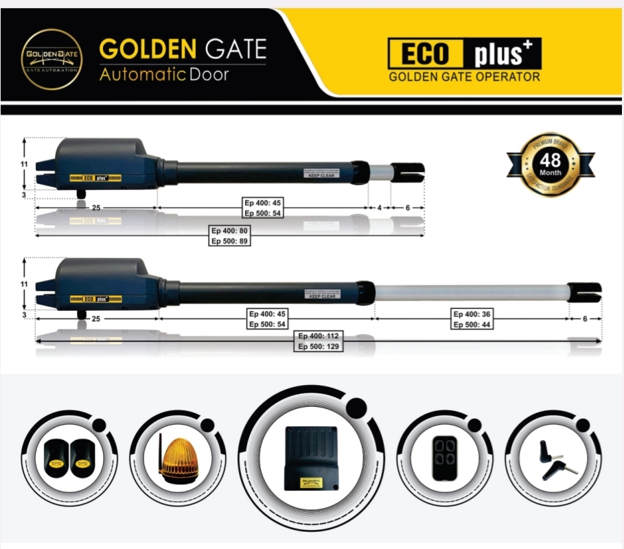 6ماه گارانتی تصادف ولتاژ مصرفی 220 ولت توان موتور 280 وات قدرت جابجایی هر لنگه درب 350 کیلوگرم قابلیت جابجایی هر لنگه درب تا عرض 2 متر درجه حفاظتی IP55 سیم پیچ تمام مس لوله شفت آلومینیمی